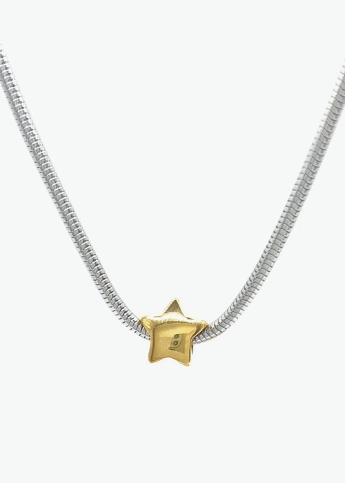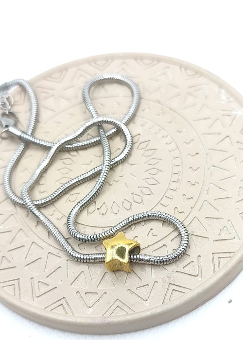 Κολιέ χοντρή αλυσίδα ατσάλι και χρυσό αστέρι ατσάλι