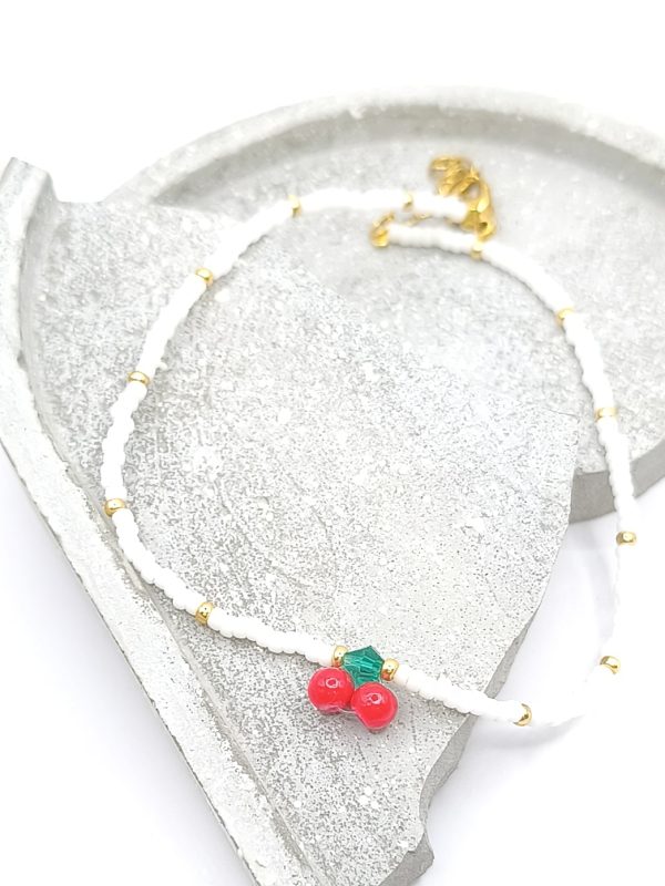 Βραχιόλι για το πόδι λευκό με κεράσι
