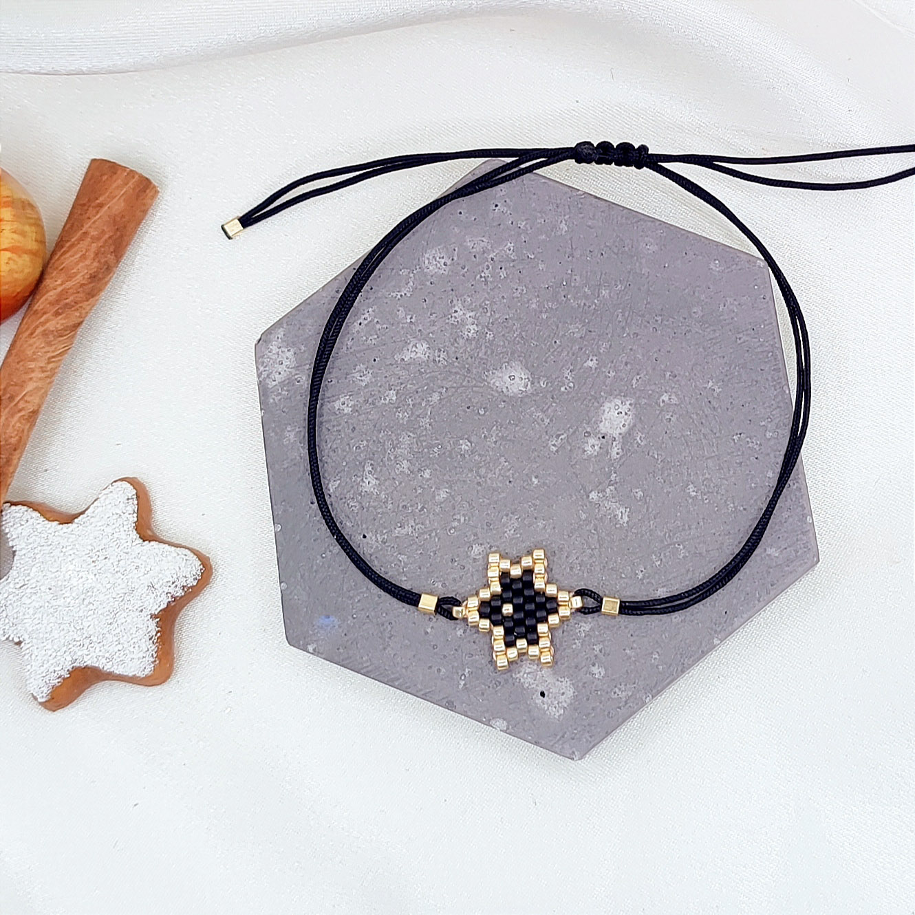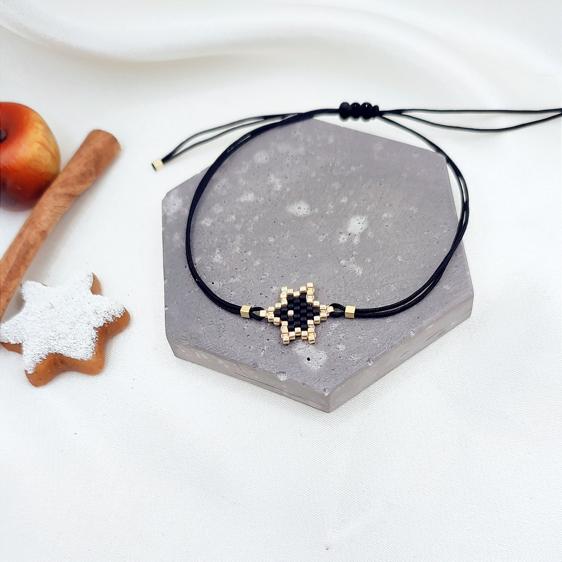 Χειροποίητο βραχιόλι με χειροποίητο αστέρι από εξαιρετικής ποιότητας χάντρες miyuki. Σε μαύρο χρώμα.
