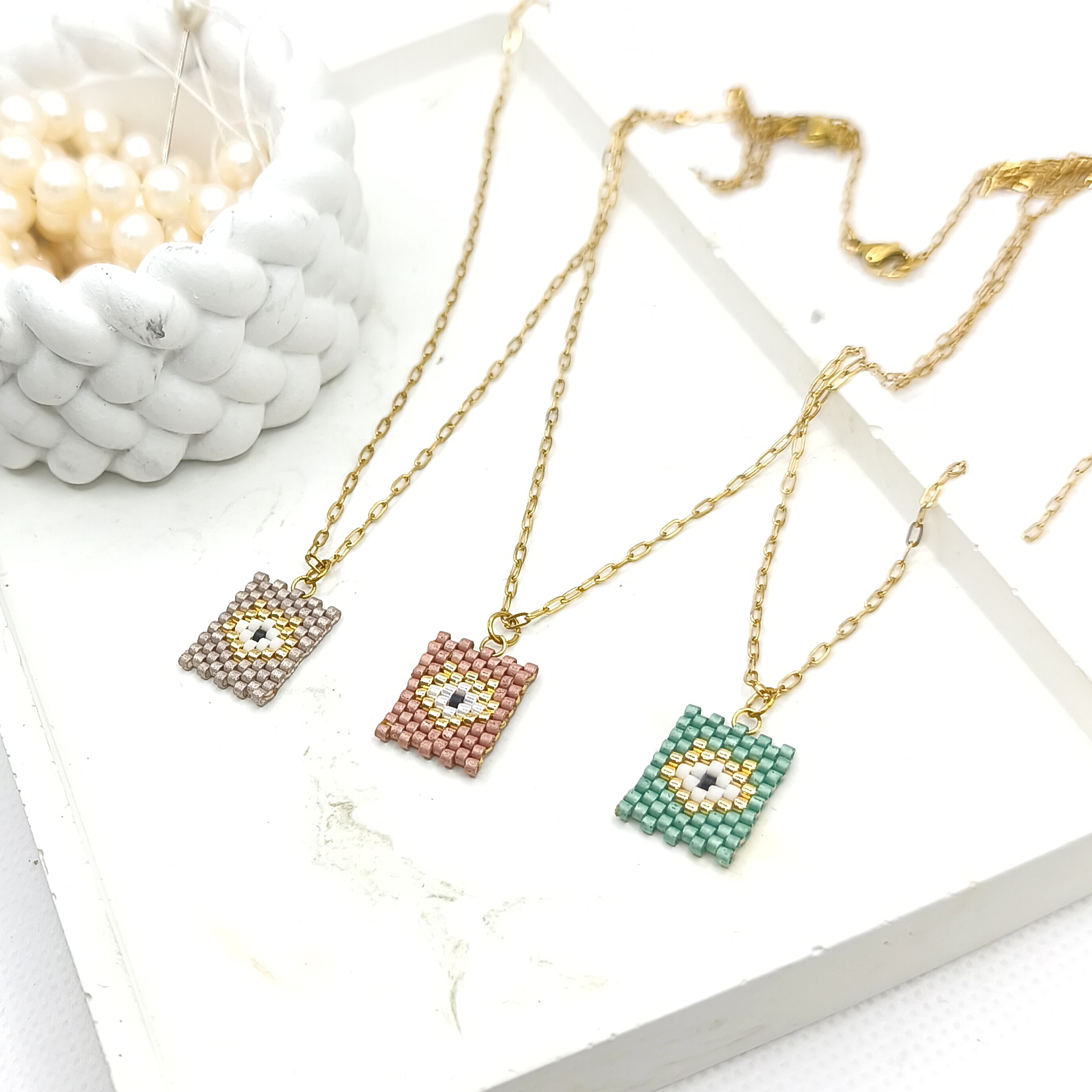 Κολιέ μάτι miyuki σε τρία μεταλλικά χρώματα