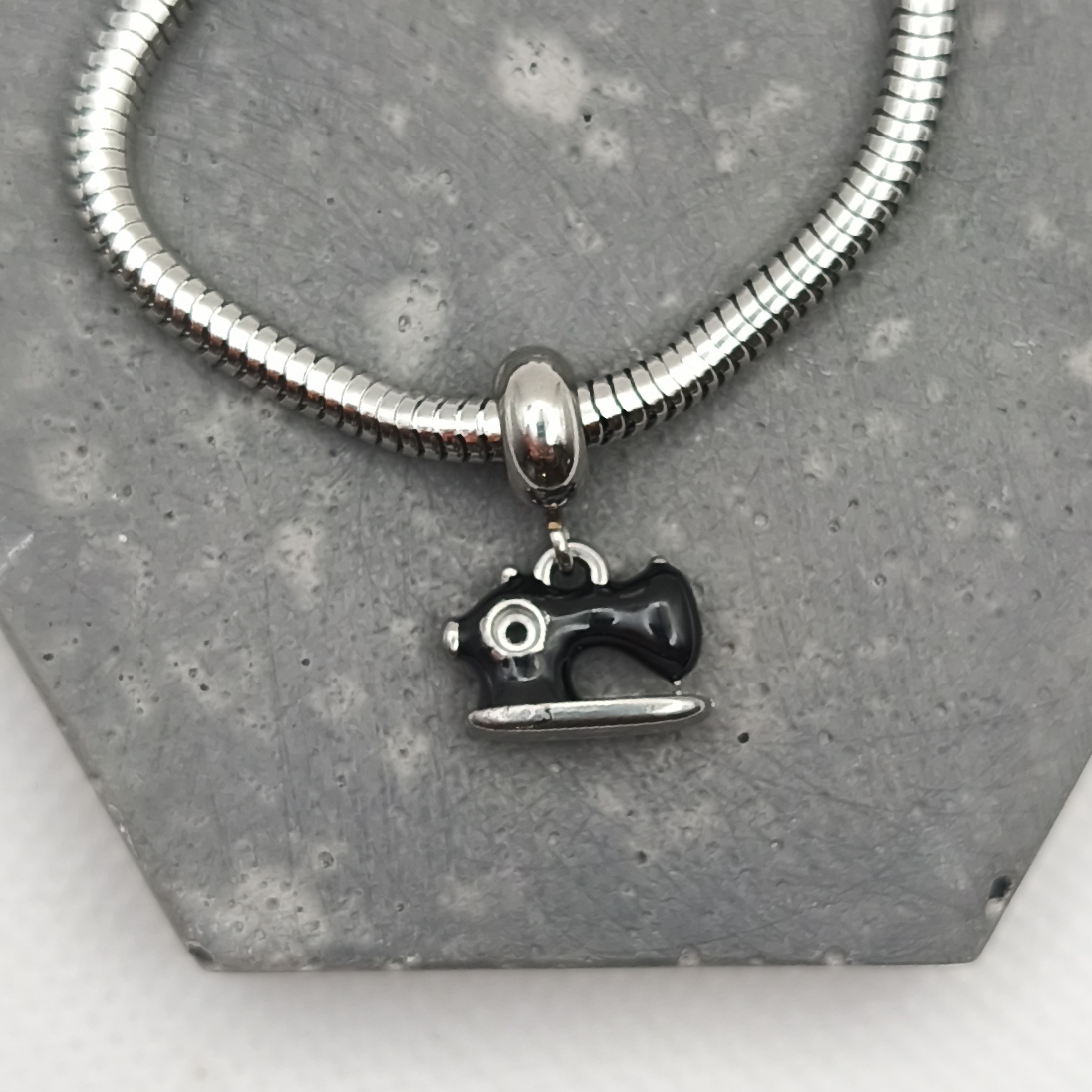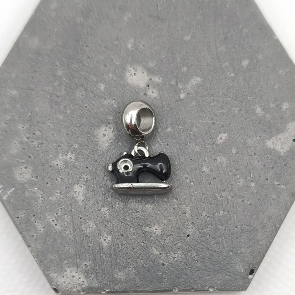 Charm ατσάλι με κρεμαστό ραπτομηχανή με μαύρο σμάλτο