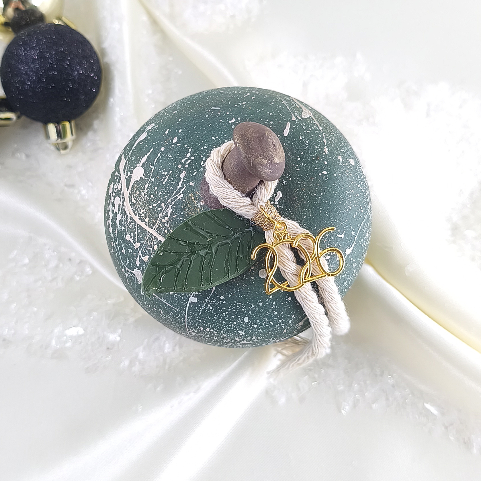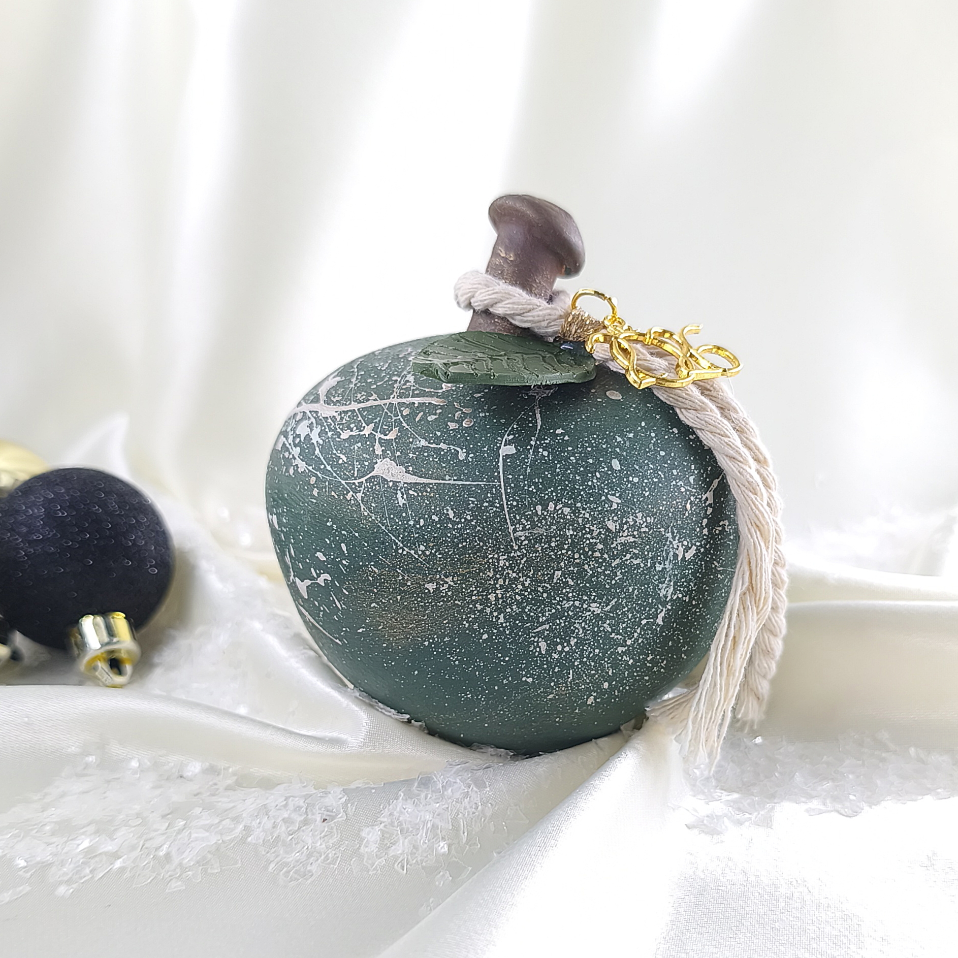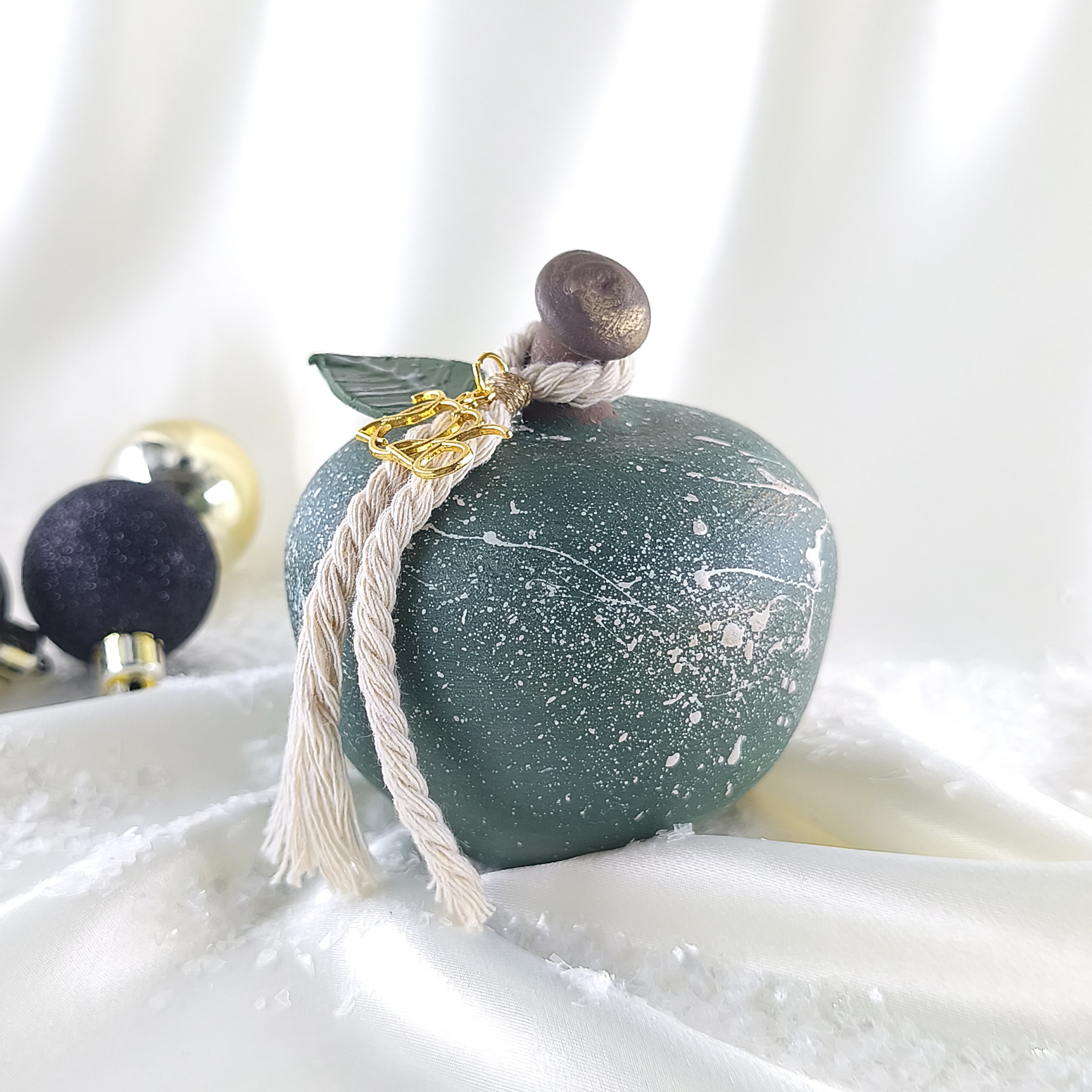 Χειροποίητο κεραμικό μήλο με φύλλο από πηλό , κορδόνι και μεταλλικό “2026”