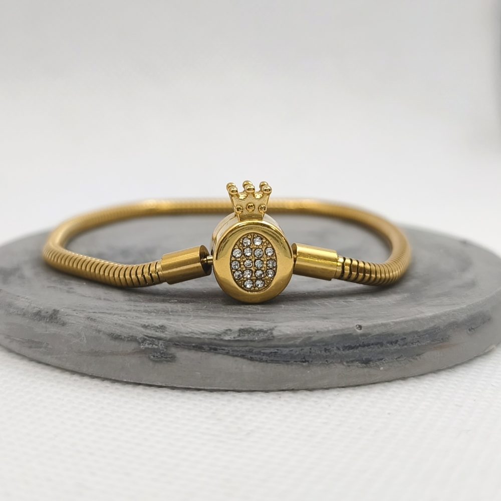 Βραχιόλι ατσάλι αλυσίδα με κούμπωμα ασφαλείας κορώνα με διάφανα στρας που ανοίγει για να μπουν charm.
