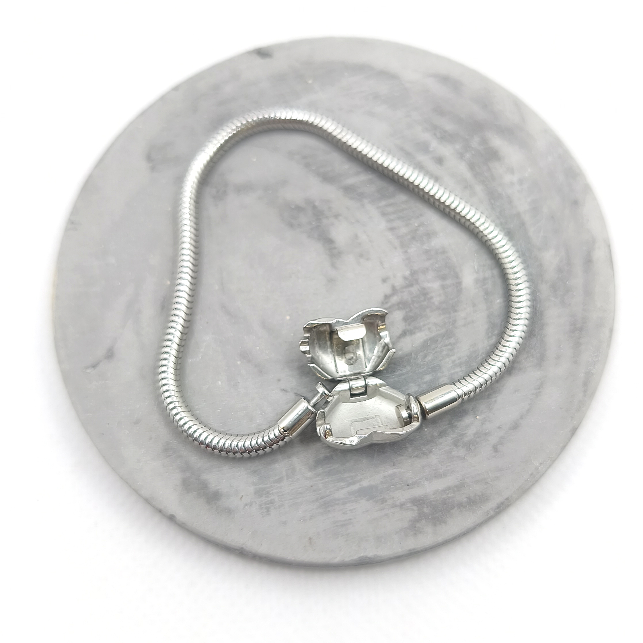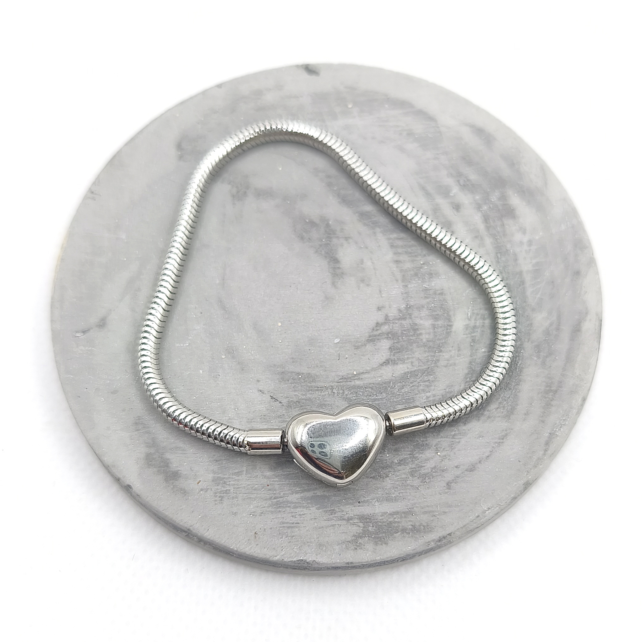 Βραχιόλι ατσάλι αλυσίδα με κούμπωμα ασφαλείας σε σχήμα καρδιά, που ανοίγει για να μπουν charm.
