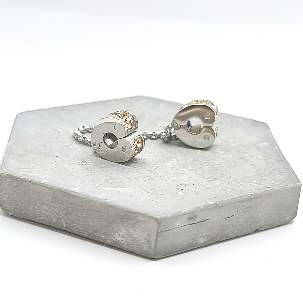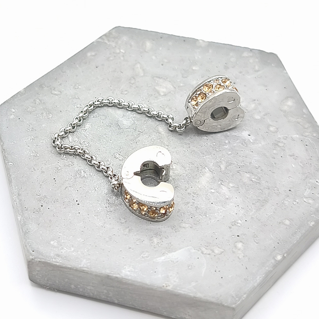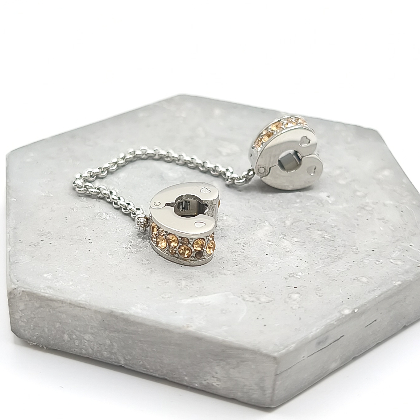 Διπλό charm stopper με αλυσίδα σε σχήμα καρδιάς