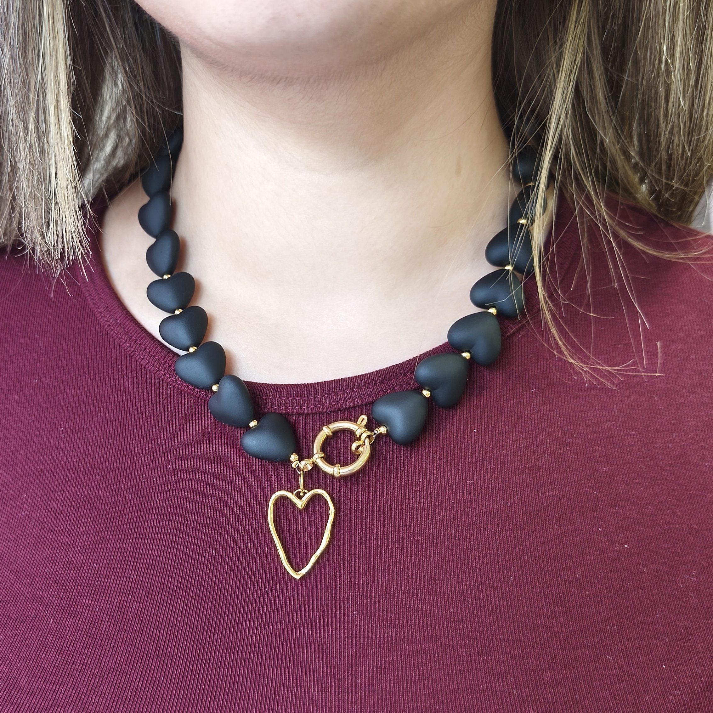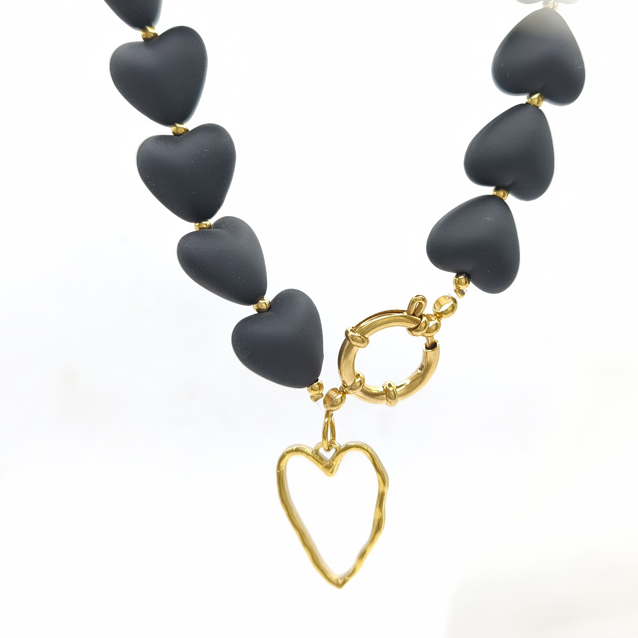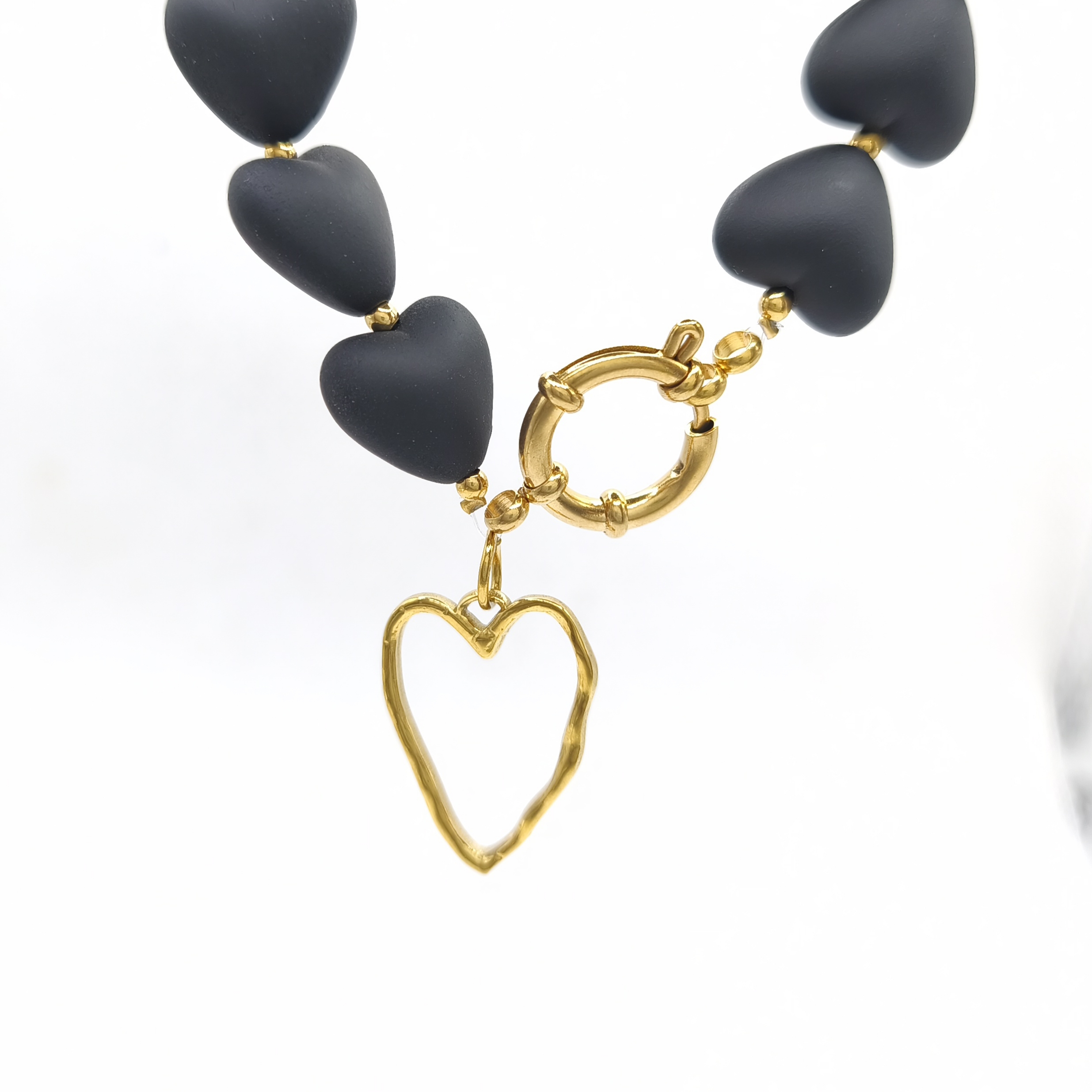 Χειροποίητο κολιέ με μαύρες καρδιές πολύ απαλές στην αφή.