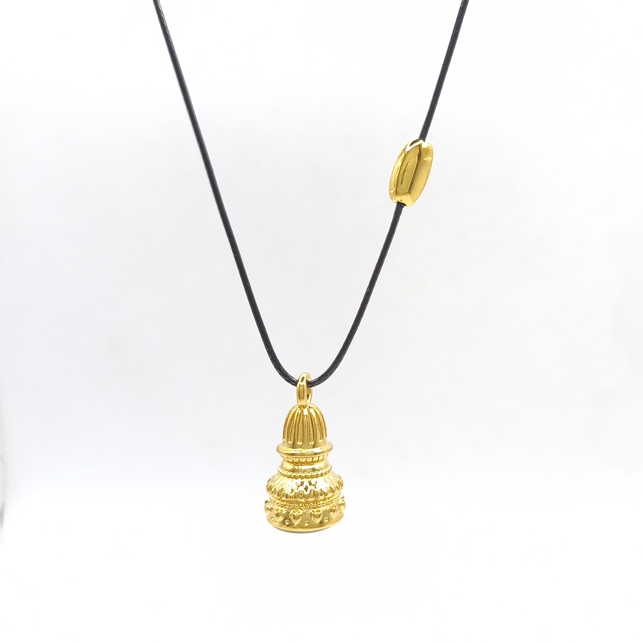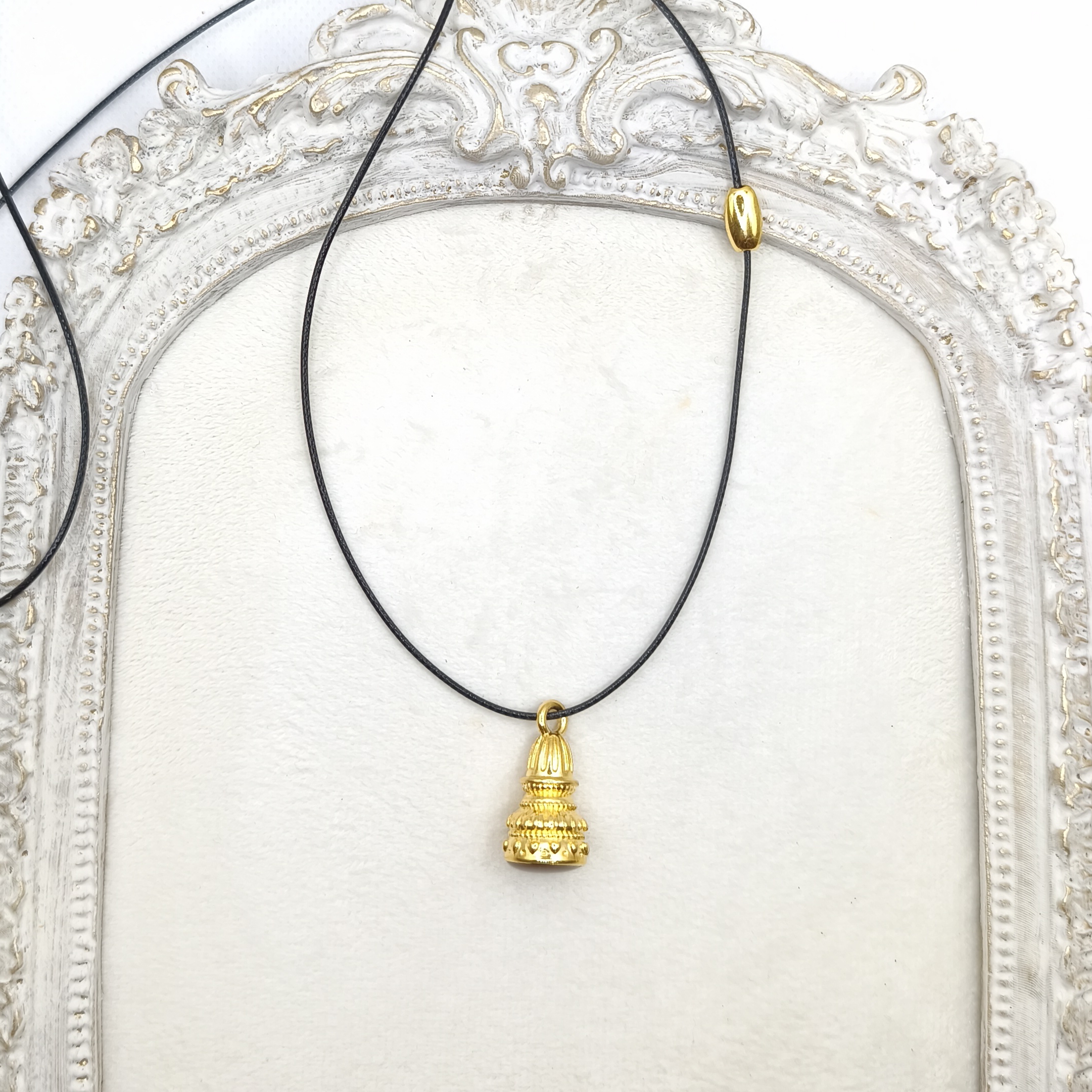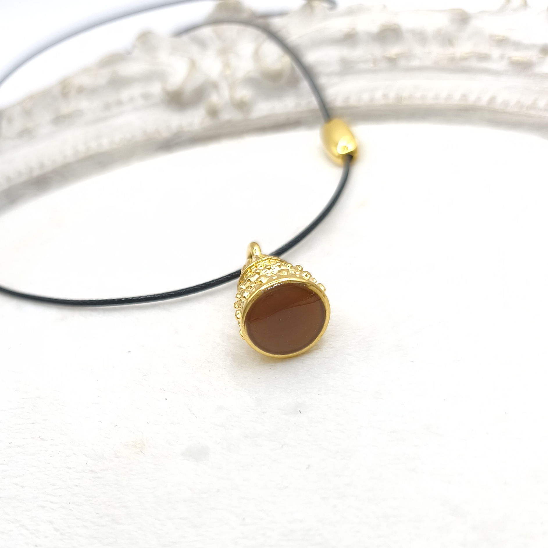 Μακρύ χειροποίητο κολιέ με μαύρο κορδόνι ,επιχρυσωμένο κρεμαστό στοιχείο με καφέ σμάλτο και επιχρυσωμένο ενωτικό.