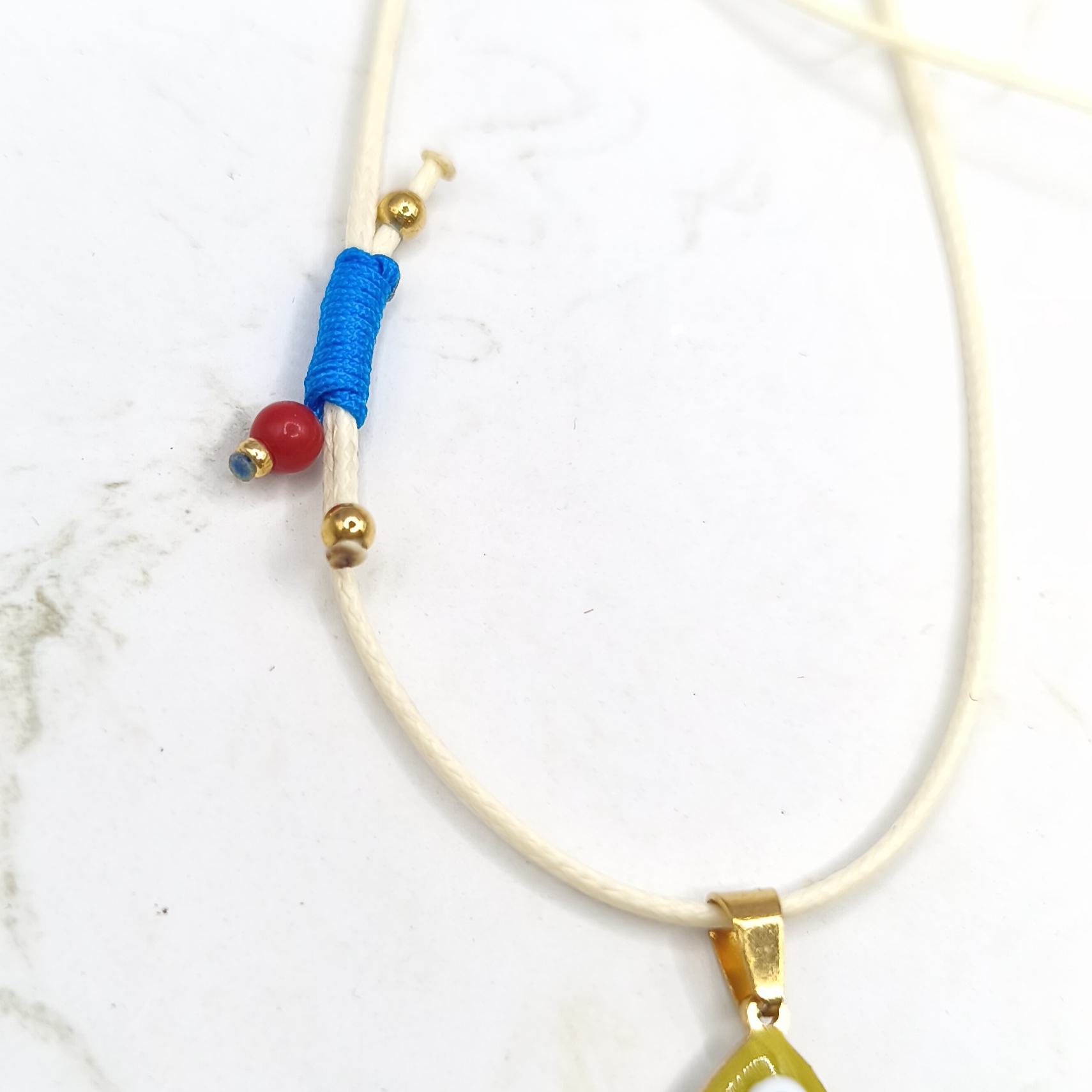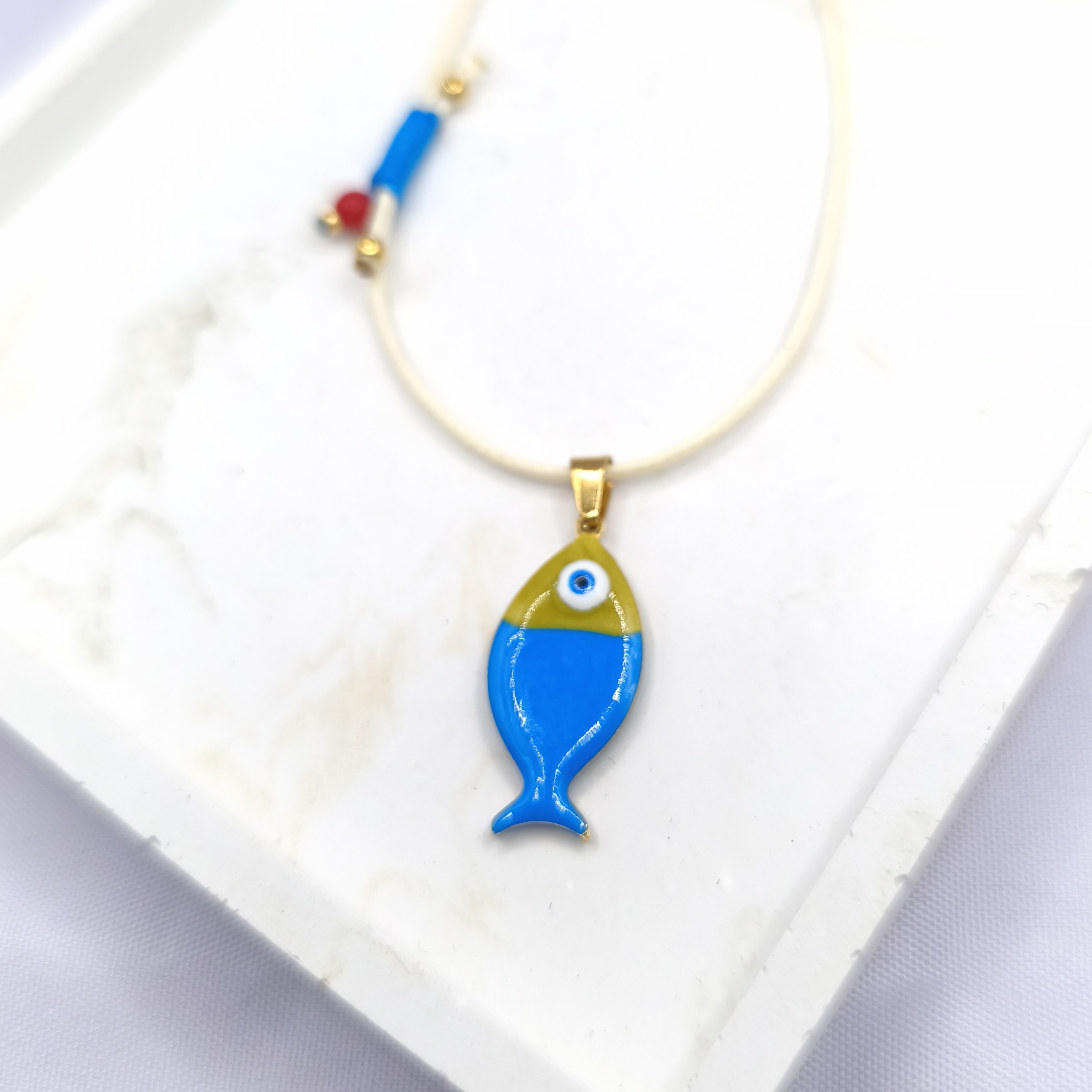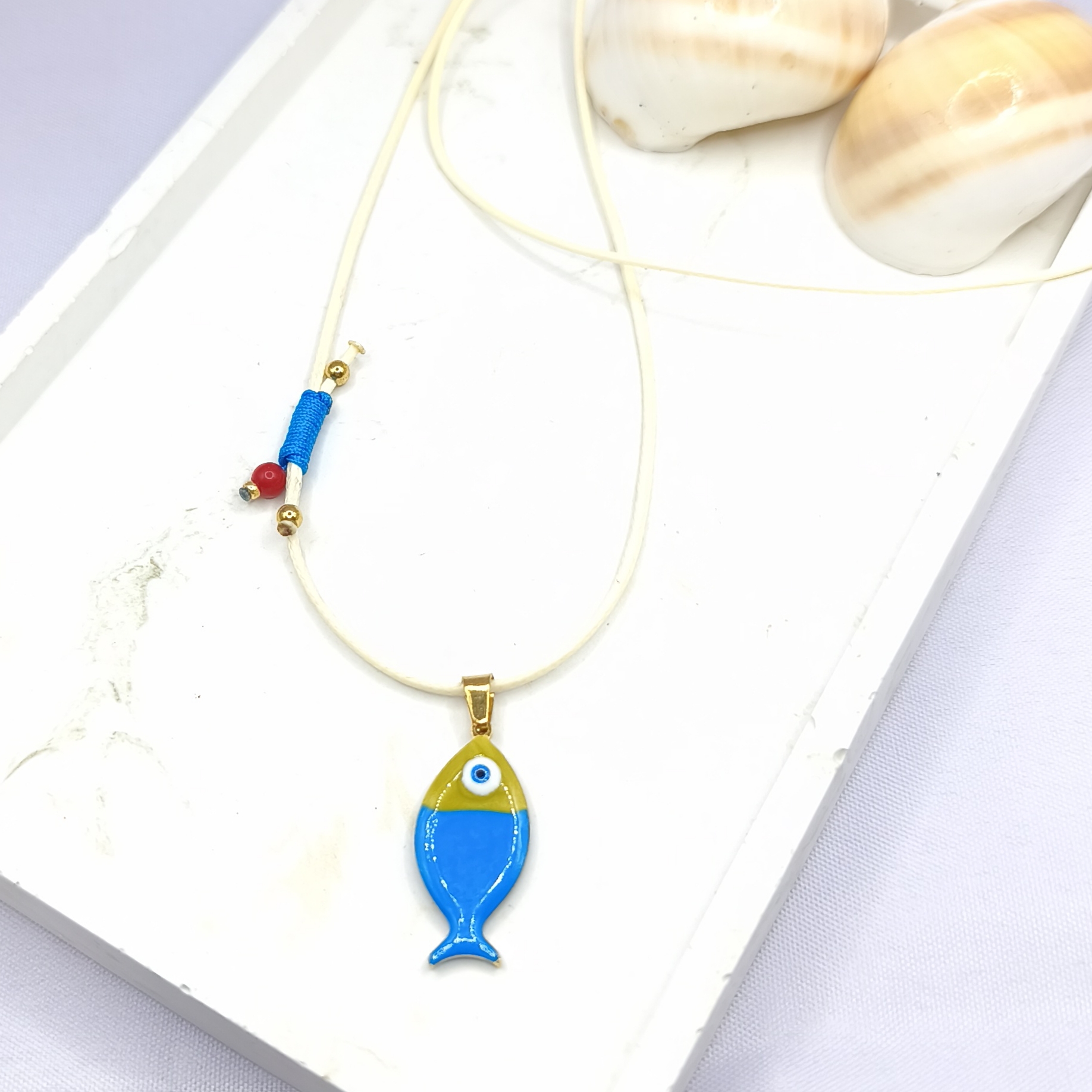 Κολιέ με γαλάζιο κορδόνι και κόκκινο ψάρι