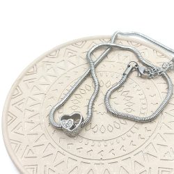 Χειροποίητο κολιέ με χοντρή αλυσίδα (2,5mm) ατσάλι φίδι και ατσάλινη διπλή καρδιά.