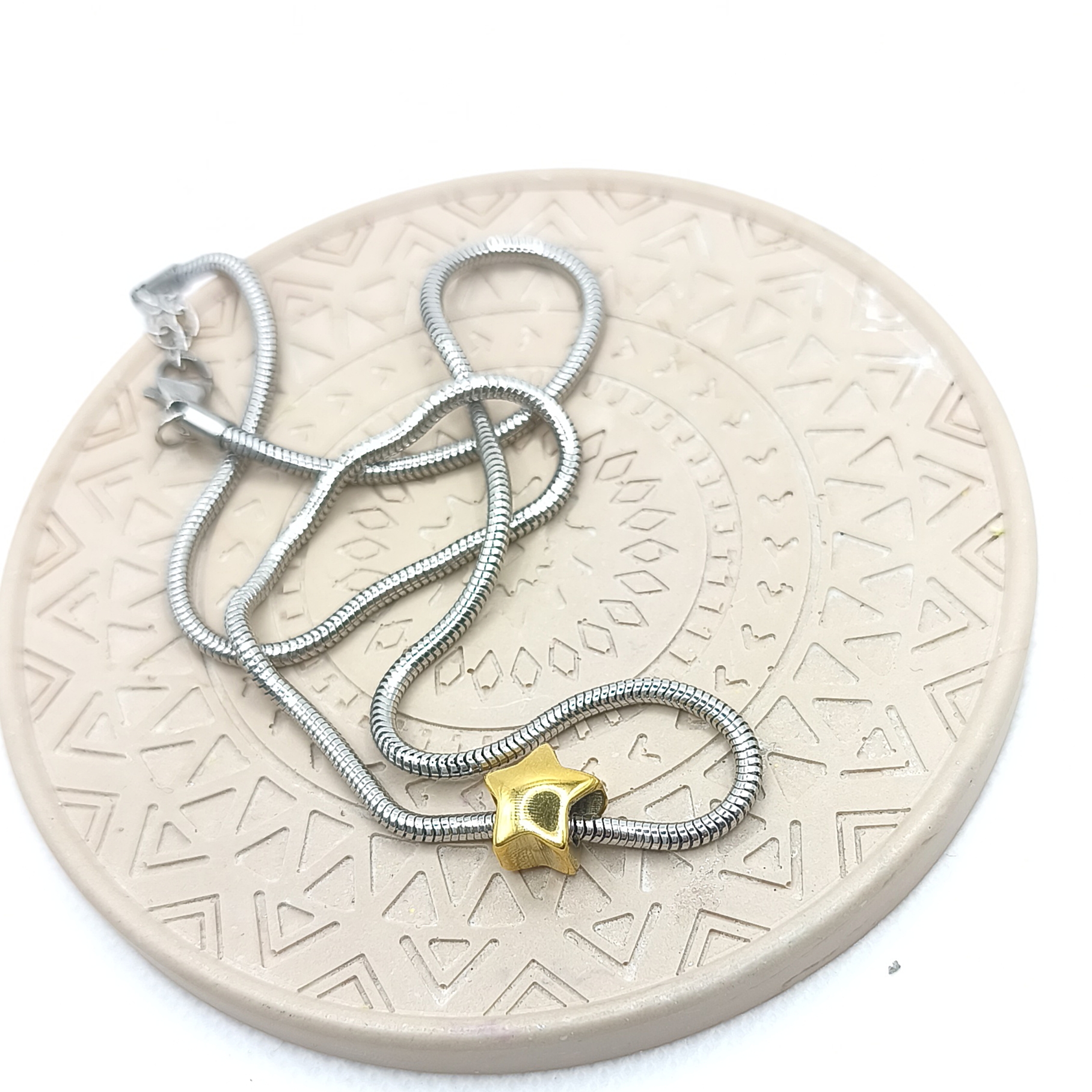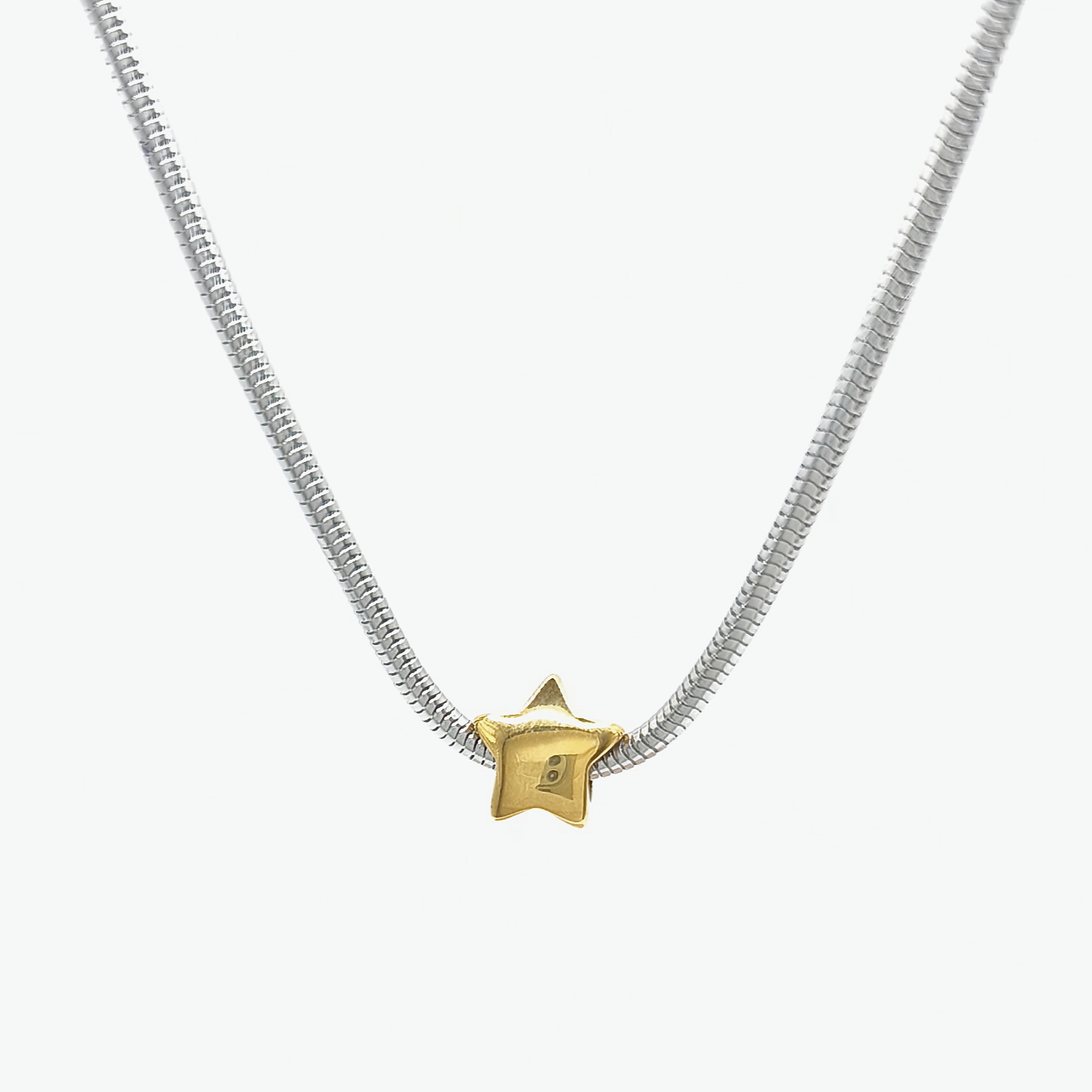Χειροποίητο κολιέ με χοντρή αλυσίδα (2,5mm) ατσάλι φίδι και ατσάλινο χρυσό αστέρι.