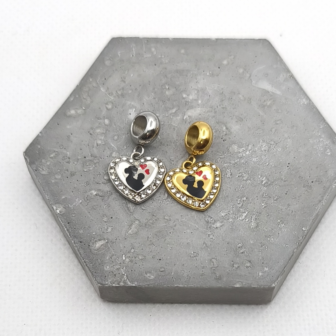 Κρεμαστό charm ατσάλι καρδία με μαμά και μωρό