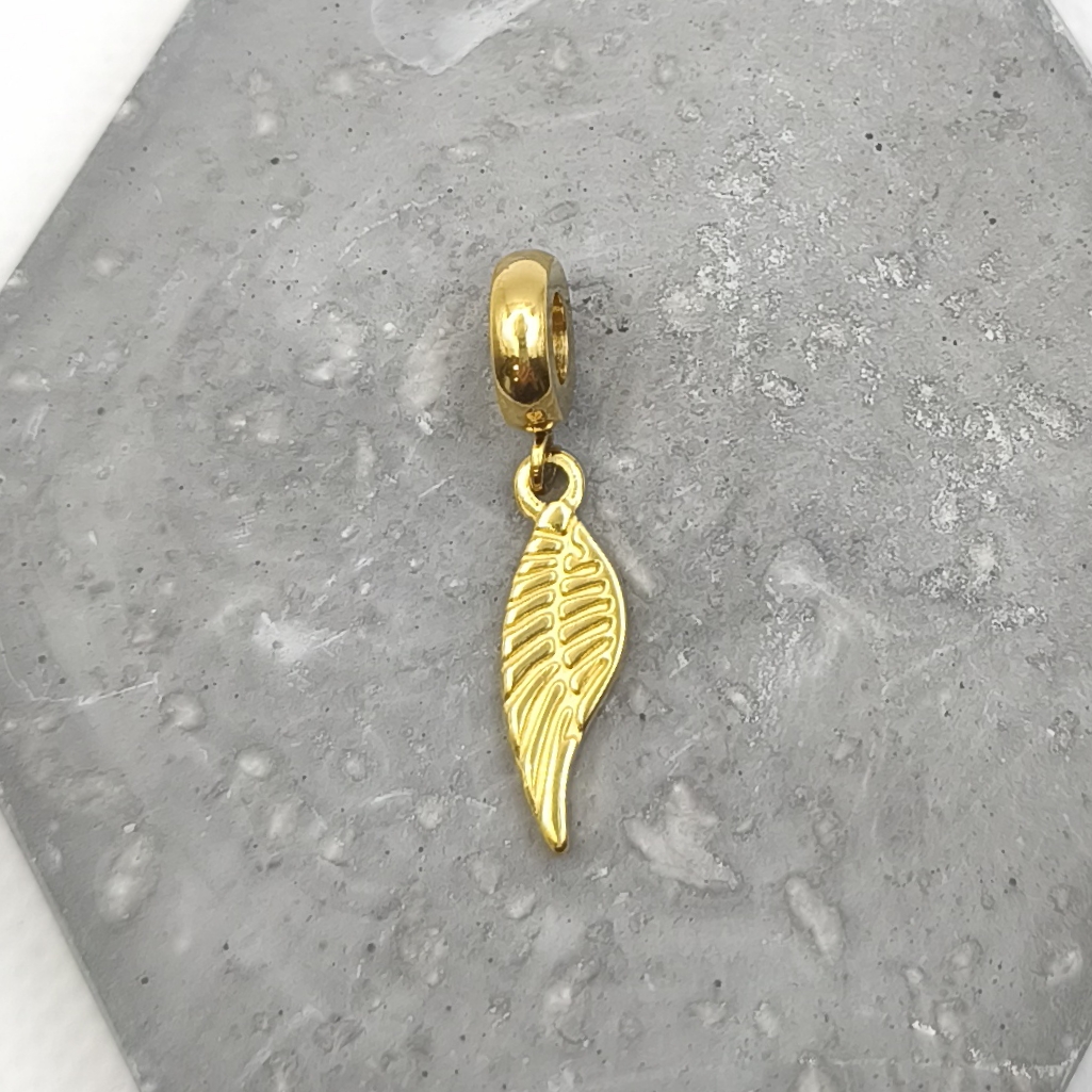 Κρεμαστό charm ατσάλι φτερό σε χρυσό
