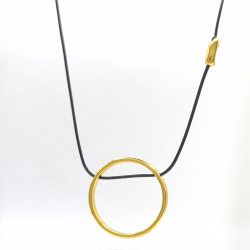 Μακρύ χειροποίητο κολιέ με μαύρο κορδόνι , επιχρυσωμένος κύκλος και επιχρυσωμένο διακοσμητικό κούμπωμα.