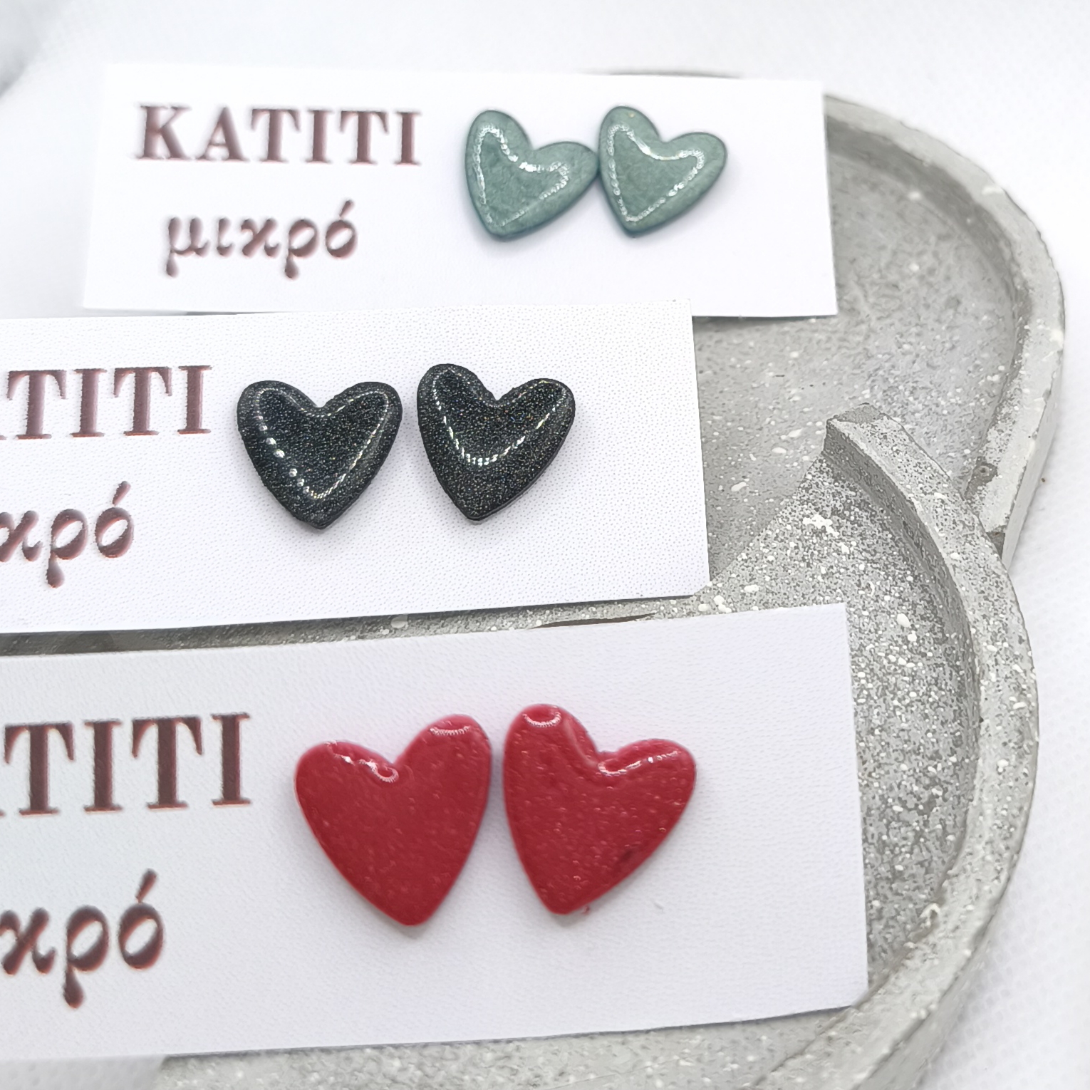 Σκουλαρίκια πηλού περλέ καρδιές
