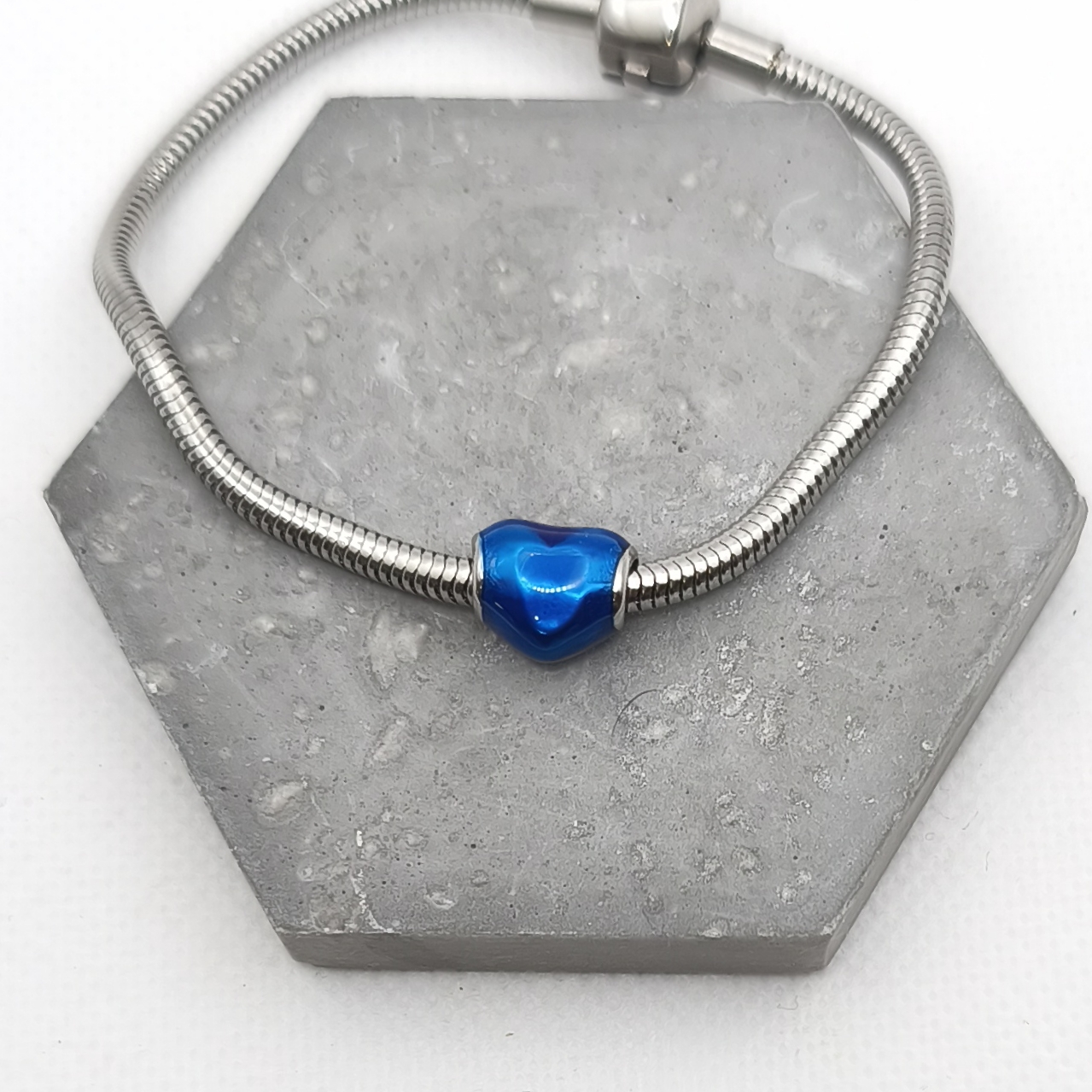 Charms χάντρα ατσάλι καρδιά με σμάλτο μπλε