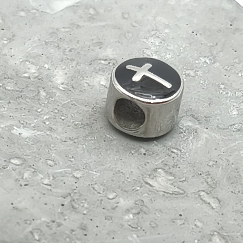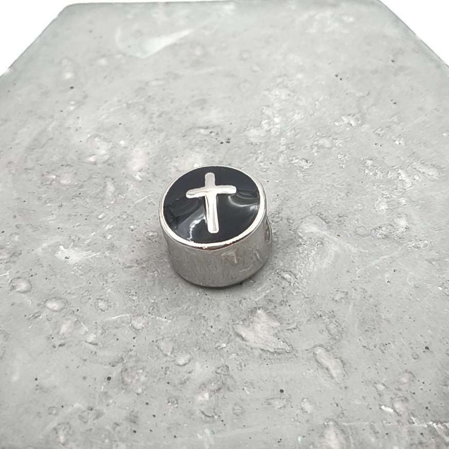 Charm ατσάλι χάντρα με μαύρο σμάλτο και ασημί σταυρό